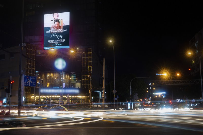 Hình ảnh Minh Hằng cùng dòng chữ “Đám cưới hạnh phúc” được xuất hiện dày đặc trên các bảng quảng cáo lớn tại TP.HCM.