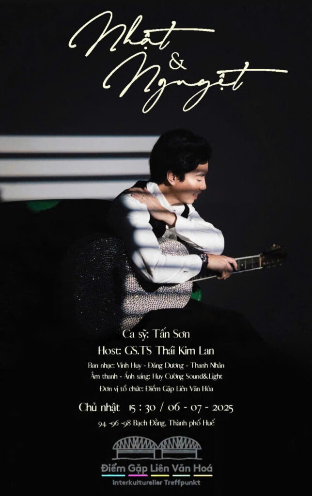 Ngày 6 tháng 7 vừa quá, đêm nhạc “Nhật Nguyệt” của ca sĩ Tấn Sơn đã diễn ra thành công rực rỡ tại thành phố Huế, để lại ấn tượng sâu sắc trong lòng khán giả. Chương trình, với chủ đề xoay quanh hình ảnh NHẬT và NGUYÊT, đã đưa người nghe vào một không gian âm nhạc đầy hoài niệm qua những ca khúc bất hủ của hai nhạc sĩ vĩ đại Trịnh Công Sơn và Phạm Duy.