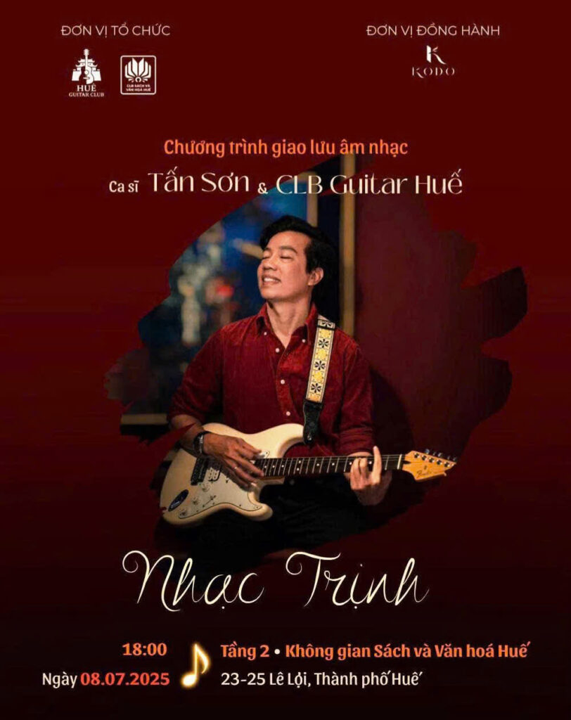 Sau thành công rực rỡ của show diễn “Nhật Nguyệt” tại Huế, ca sĩ Tấn Sơn tiếp tục để lại ấn tượng sâu sắc trong lòng công chúng cố đô với đêm giao lưu ấm cúng và đầy cảm xúc. Đáp lại tình cảm nồng nhiệt từ khán giả, Tấn Sơn đã có mặt tại một trung tâm văn hóa ven bờ sông Hương thơ mộng ngày 8/7, mang đến một buổi tối khó quên.