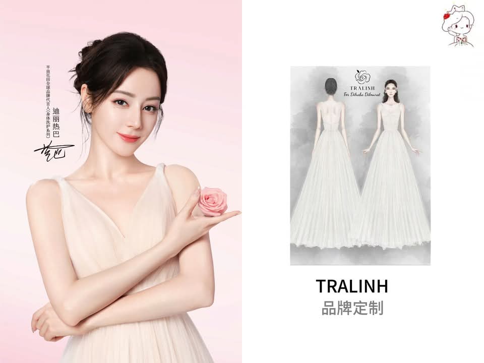 Nói thêm về trang phục, nhà thiết kế Trà Linh cho biết: ‘Ngay sau khi chiếc váy trong bộ sưu tập Radiance Resort 25 được giới thiệu tại showroom của Tralinh tại Thượng Hải, studio của Địch Lệ Nhiệt Ba đã nhanh chóng liên hệ đặt hàng sản phẩm này cho chiến dịch quảng cáo quay hình vào tháng 6 và chính thức phát hành thời điểm cuối tháng 7. Đây là lần thứ hai nữ diễn viên hàng đầu Trung Quốc lựa chọn Tralinh, khẳng định sự đồng điệu trong tinh thần thiết kế giữa thương hiệu và ê-kíp stylist hiện tại của cô.’