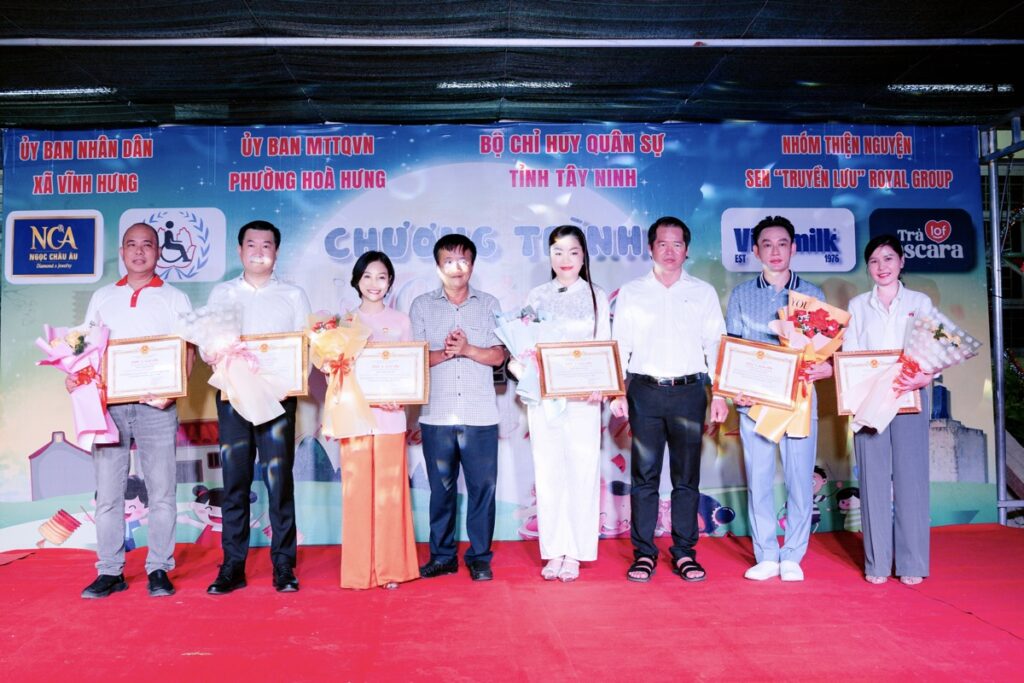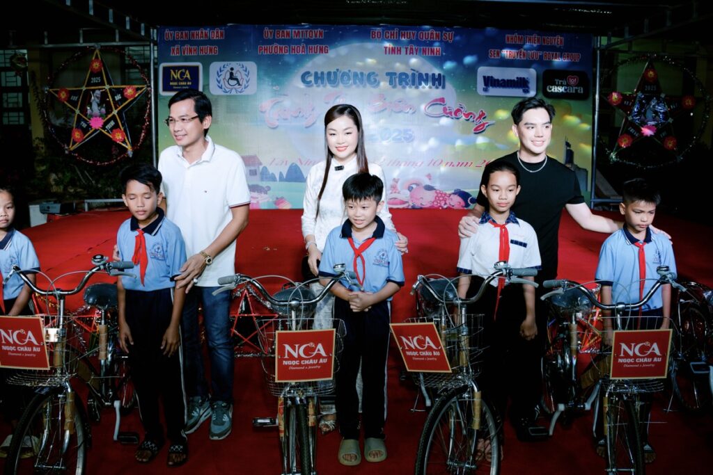 Trong chương trình “Trung thu Biên cương” tại Tây Ninh do nhóm thiện nguyện Sen “Truyền Lưu” Royal Group phối hợp cùng Bộ Chỉ huy Quân sự tỉnh tổ chức, chị đồng hành với vai trò nhà tài trợ chính thông qua thương hiệu Ngọc Châu Âu Jewelry, trao tặng hàng chục chiếc xe đạp cùng nhiều phần quà cho trẻ em vùng biên giới. Không dừng lại ở vai trò tài trợ, chị trực tiếp tham gia sự kiện, trao từng món quà cho các em nhỏ bằng tấm lòng ấm áp và chân thành.