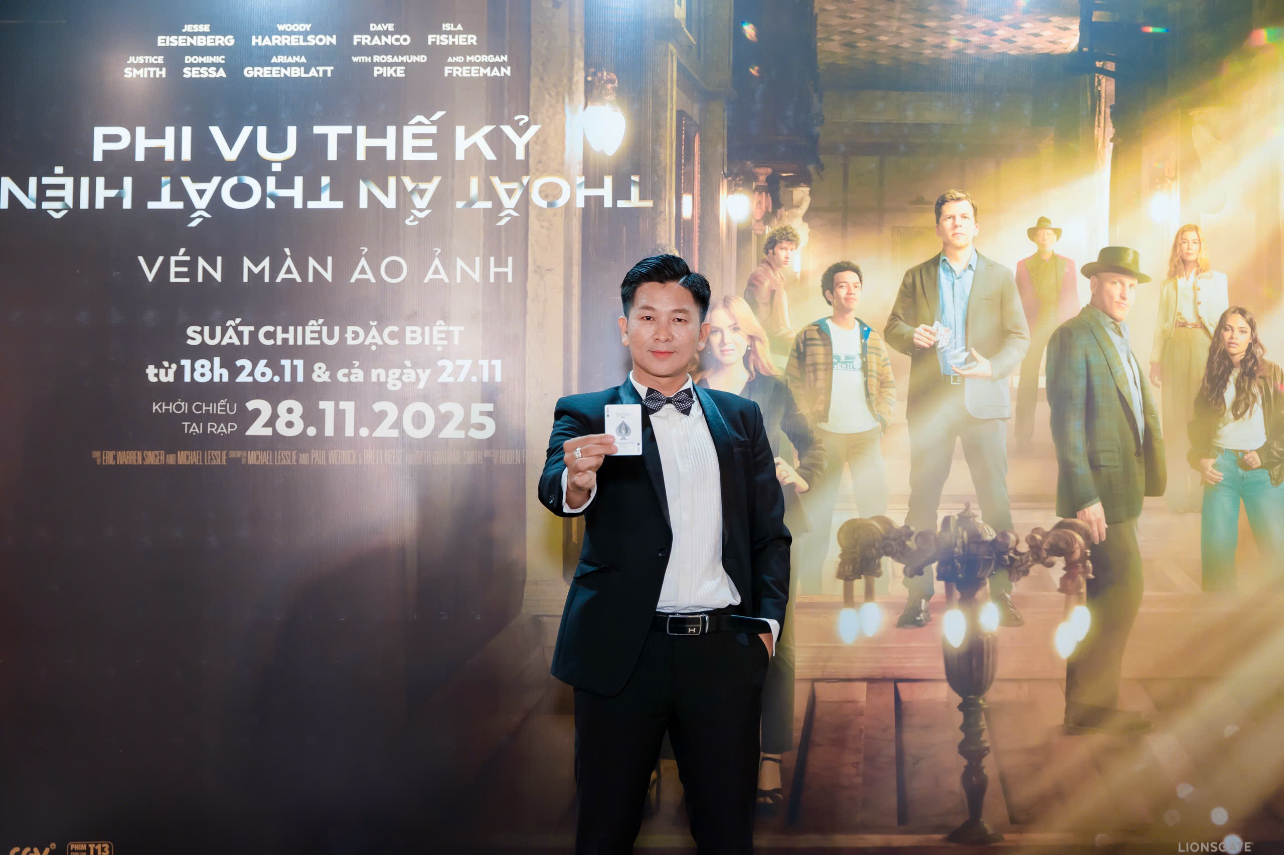 Trong vai trò khách mời đặc biệt của chương trình ra mắt phim, ảo thuật gia Nguyễn Phương đã mang đến loạt tiết mục được “đo ni đóng giày” theo phong cách của Now You See Me. Những màn trình diễn với bài lá – vốn là dấu ấn của bộ phim – khiến toàn bộ khách mời tại sự kiện không khỏi kinh ngạc. Đặc biệt, khoảnh khắc lá bài viên kim cương hình trái tim biến mất ngay trong tay khán giả và xuất hiện trở lại trong tay anh, tái hiện giống hệt một phân cảnh trong phim, đã khiến cả khán phòng bùng nổ.