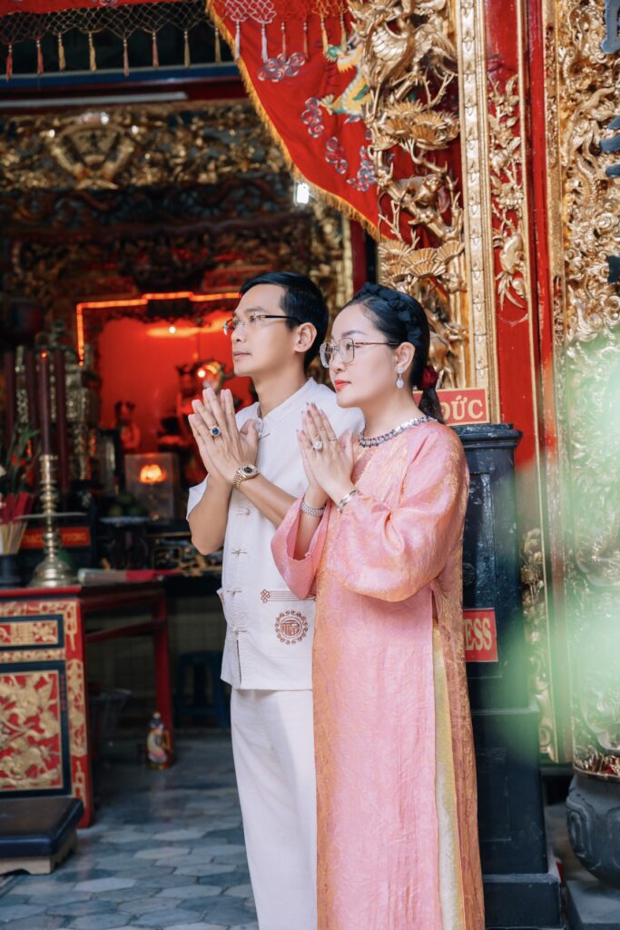 Nam Phương Linh Từ là điểm dừng chân tiếp theo, nơi lưu giữ những giá trị truyền thống và chiều sâu tâm linh của vùng đất Sa Đéc. Trong không gian thanh tịnh ấy, hình ảnh Hoa hậu Hoàng Thanh Nga càng toát lên nét trầm lắng, thể hiện sự trân trọng đối với văn hoá và cội nguồn dân tộc.