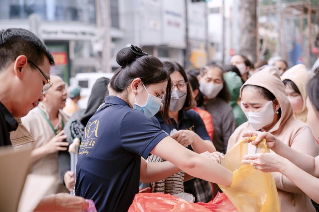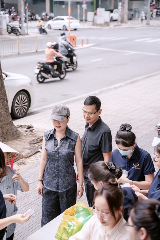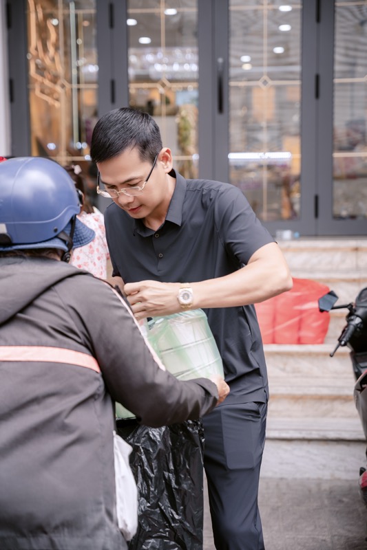 Trong đợt phát cơm gần nhất vào ngày mùng 2 âm lịch, Hoa hậu Hoàng Thanh Nga cùng đội ngũ đã trao tặng 300 phần cơm chay, mỗi phần gồm cơm, canh và sữa. Từng suất ăn được chuẩn bị chỉn chu, đảm bảo dinh dưỡng và vệ sinh, thể hiện sự trân trọng mà cô dành cho từng người nhận.